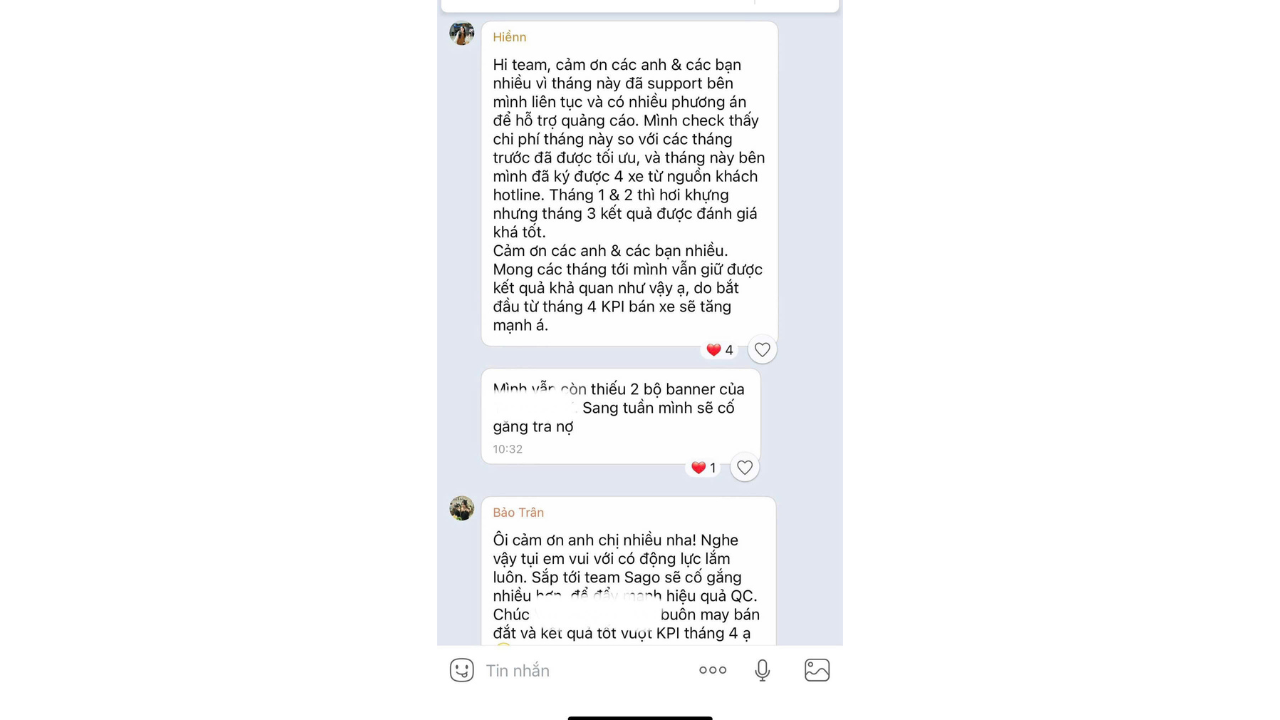 SAGO giúp khách hàng tối ưu chi phí quảng cáo, giúp khách hàng nhanh chóng đạt được KPI bán hàng mỗi tháng, chốt đơn được nhiều xe hơn.