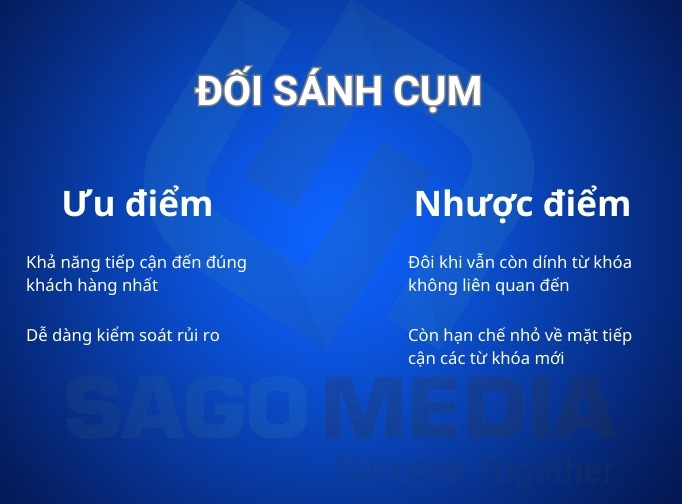 Nhìn chung về ưu điểm và nhược điểm thì đối sánh cụm từ có nhiều ưu điểm và dễ dàng áp dụng nhất mà lại hiệu quả. Do đó loại này được nhiều nhà quảng cáo lựa chọn.