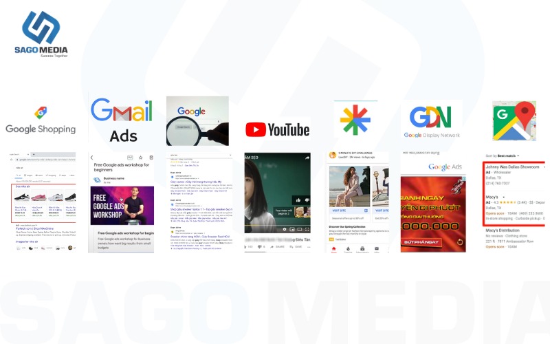 Bên cạnh tìm kiếm, thì Google cũng sở hữu và liên kết với rất nhiều những website khác nhau thuộc hệ thống mạng hiển thị và chương trình Adsense của Hãng. Trong đó, nổi bật nhất có lẽ là 2 sản phẩm Google sở hữu – Youtube và Gmail và hàng loạt các trang báo uy tín ở Việt Nam – VNExpress, Dân Trí, 24h.com.vn, . ..