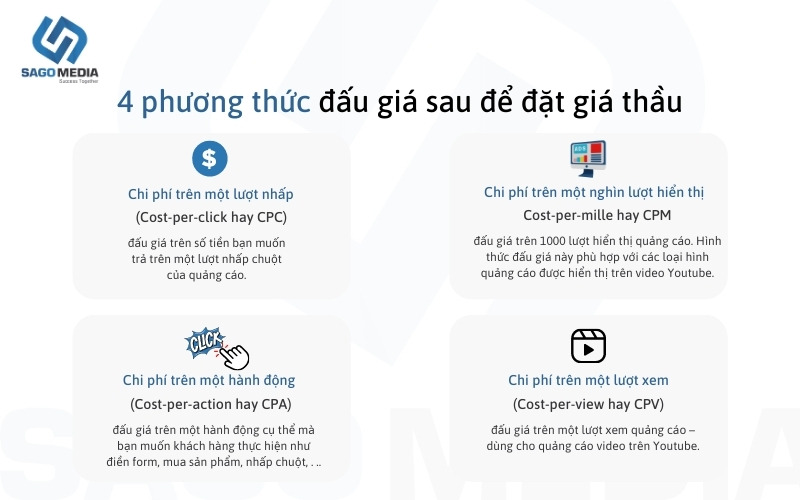 Nhà quảng cáo có thể lựa chọn 4 phương thức đấu giá sau để đặt giá thầu: