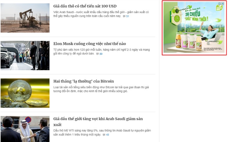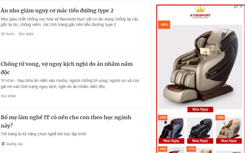 Ví dụ mẫu quảng cáo Google được hiển thị trên báo VNExpress
