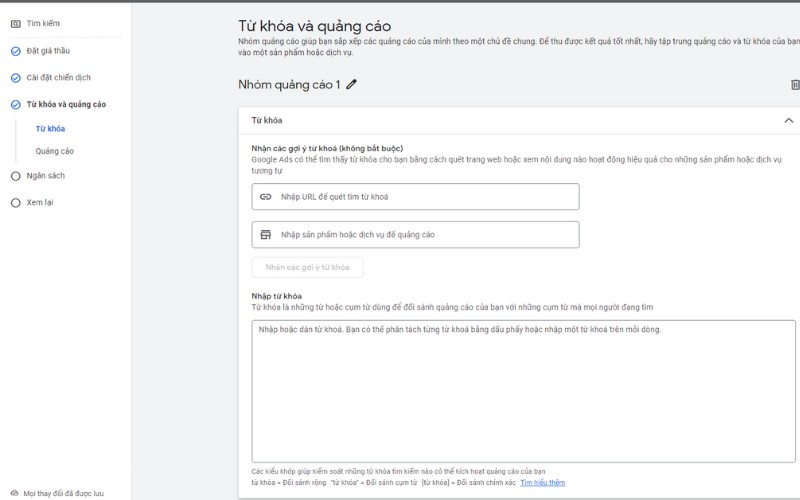 Tại trang chủ bạn sẽ lựa chọn từ khoá – Đây là loại từ khoá có thể khiến quảng cáo Google Ads của bạn hiện diện trên bảng kết quả tìm kiếm.