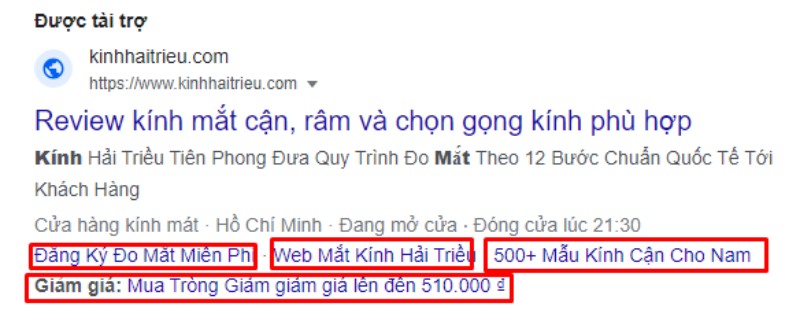 Sau khi viết xong mẫu quảng cáo rồi bạn cần có phần mở rộng quảng cáo. Đây là các quảng cáo bổ trợ và có thể chạy bên cạnh mẫu quảng cáo chính. Với mỗi một chiến dịch quảng cáo nên có tối thiểu 4 phần mở rộng quảng cáo.